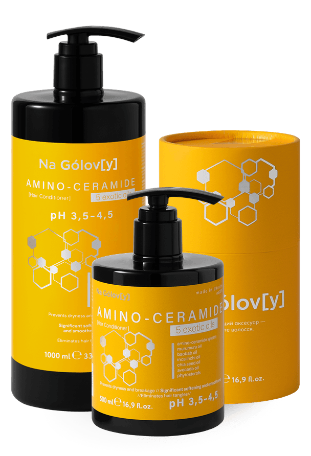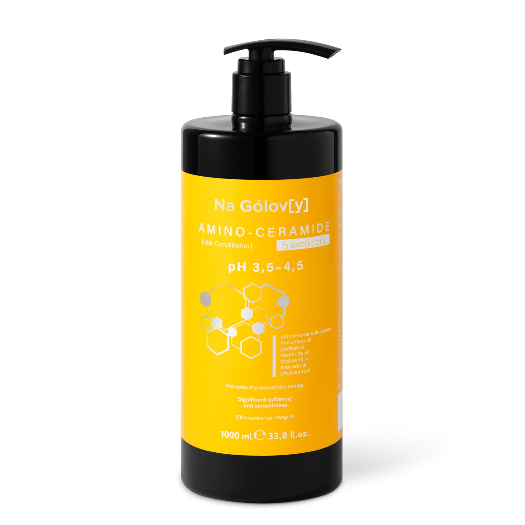 Аміно-церамідний кондиціонер для волосся 5 екзотичних олій ТМ «Na Gólov[y]» забезпечує ефективне кондиціонування та сприяє легкому розчісуванню. Комплекс екзотичних олій і фітостеролів сприяє зволоженню, пом’якшенню та надає еластичності волоссю. Кондиціонер зберігає доглянутий вигляд волосся, забезпечує гладкість і блиск, усуває сплутування.