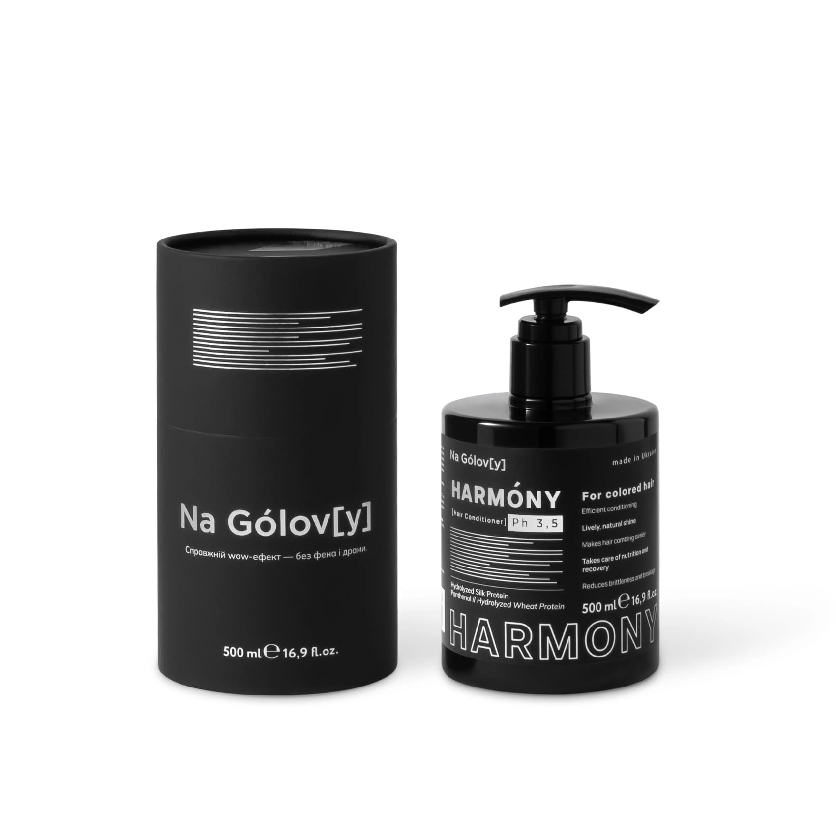 Кондиціонер для фарбованого волосся Harmony ТМ «Na Gólov[y]» допомагає зберегти колір, надає блиск та зволожує пасма на всій довжині, запобігає ламкості та стоншенню волосся. Він ефективно кондиціонує і розгладжує, а також значно полегшує вологе й сухе розчісування.