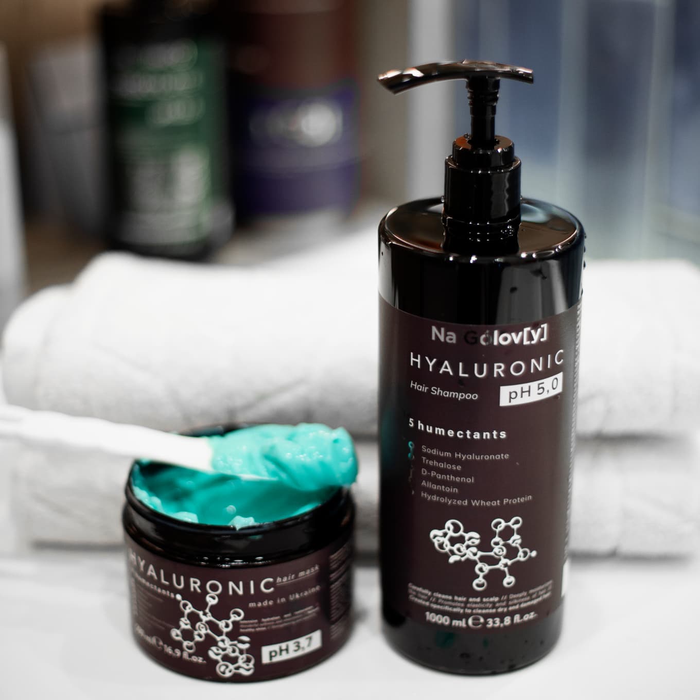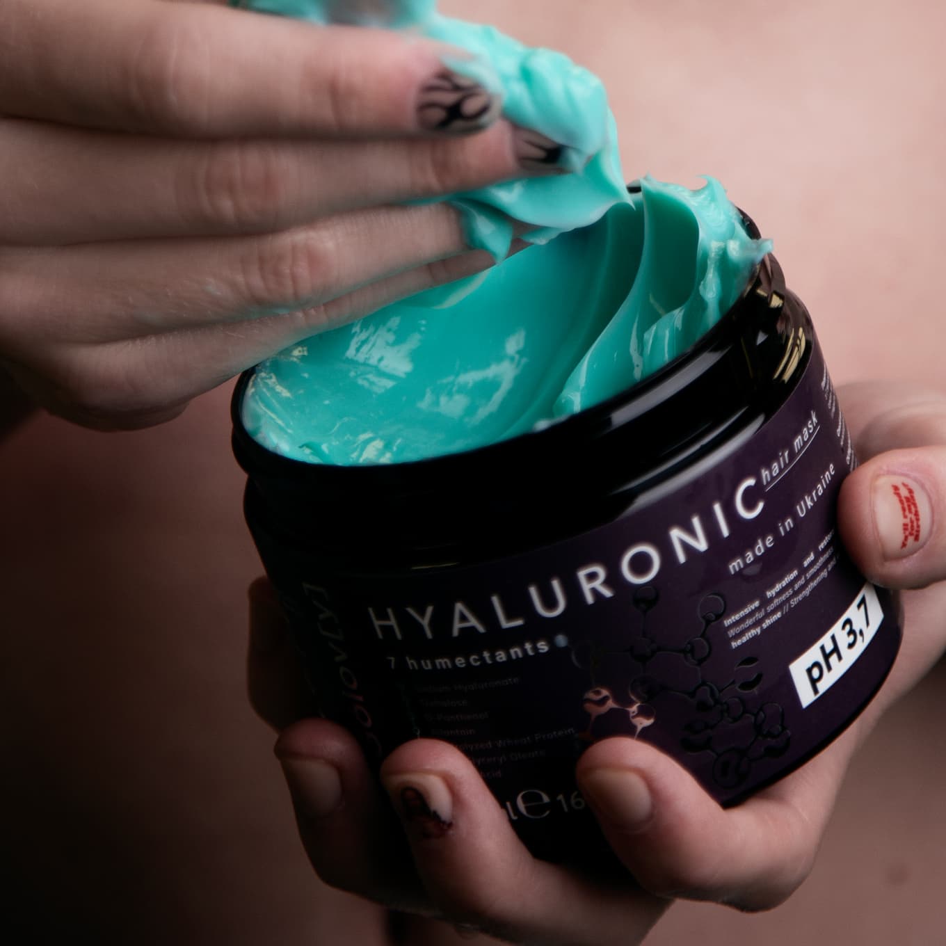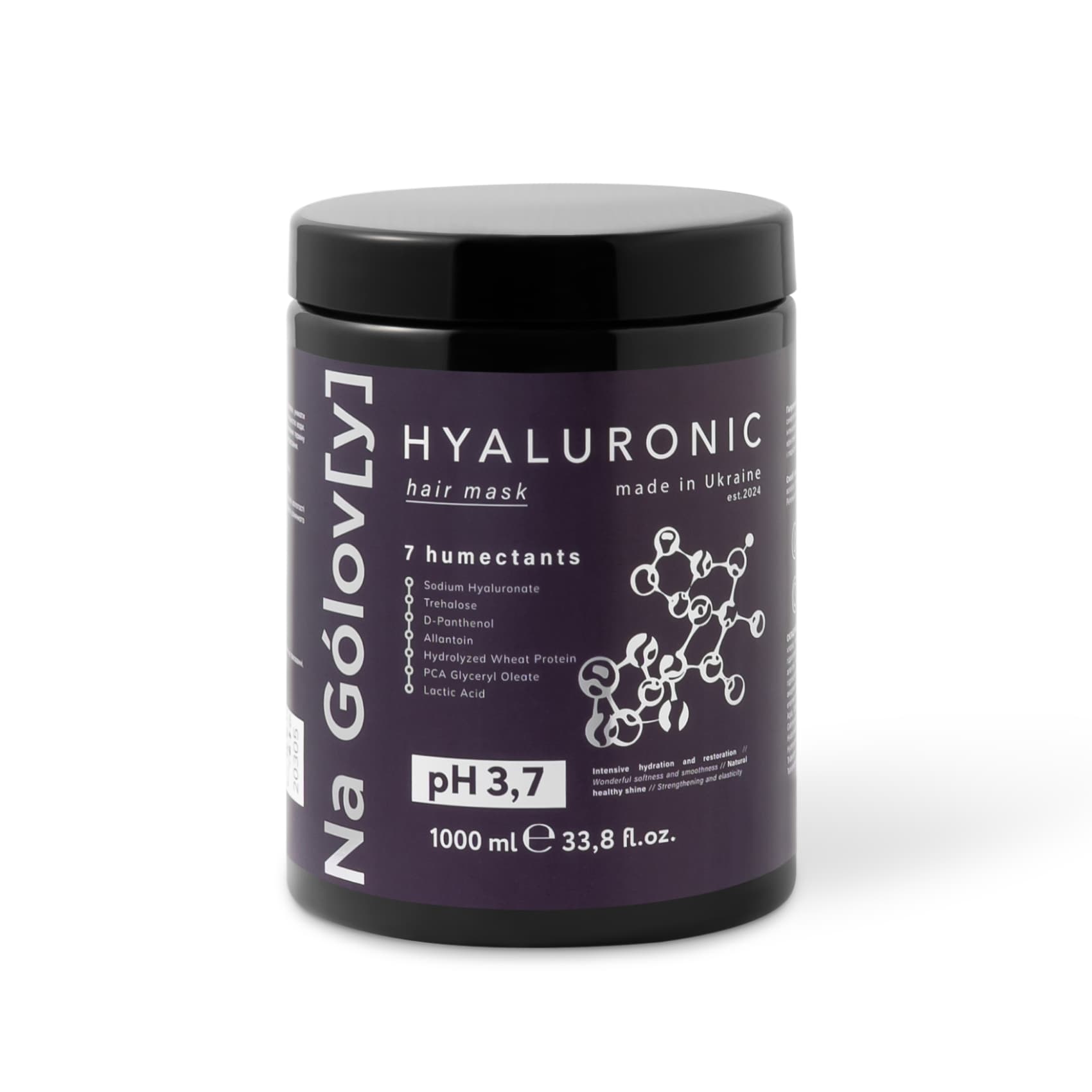 Гіалуронова маска для волосся 7 зволожувачів ТМ «Na Gólov[y]» містить синергетичну комбінацію з 7 зволожувальних компонентів і призначена для інтенсивного зволоження і відновлення пошкодженого, сухого волосся. Вона ефективно кондиціонує, пом’якшує і розгладжує волосся, надає йому блиск і гладкість, покращує еластичність і запобігає появі посічених кінчиків.