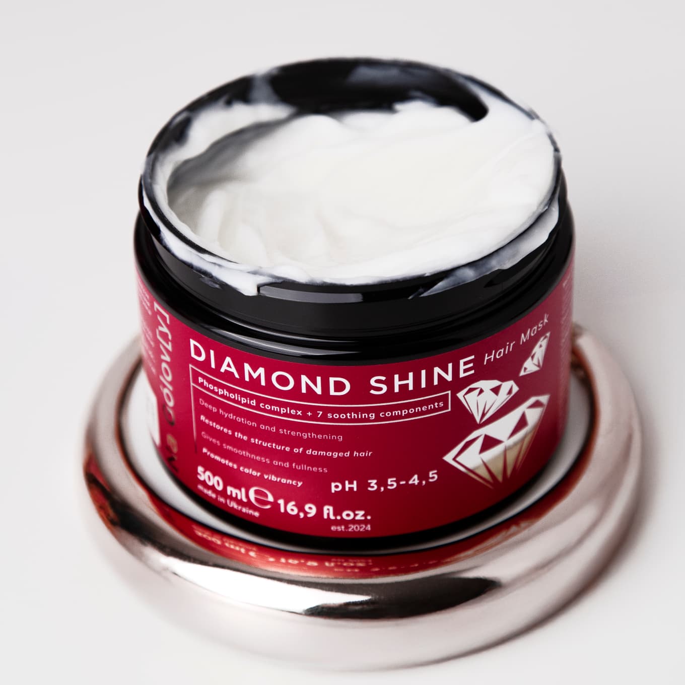 Маска для волосся Діамантовий блиск ТМ «Na Gólov[y]» призначена для зволоження і зміцнення сухого, пошкодженого волосся. Ефективно кондиціонує, розгладжує та глибоко зволожує. Має аромувальний ефект завдяки вмісту рисового крохмалю та сприяє яскравості кольору. Поєднання комплексу фосфоліпідів і 7 заспокійливих компонентів підсилює ефективність догляду за всією довжиною волосся.