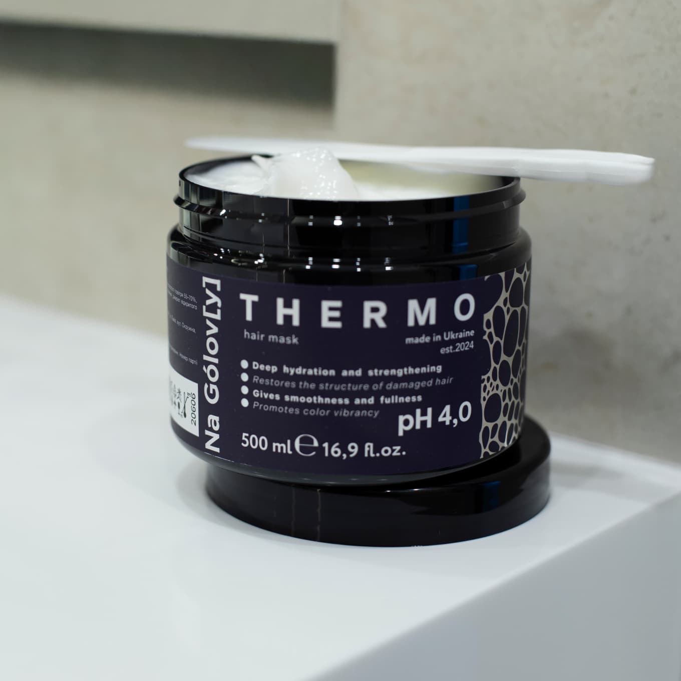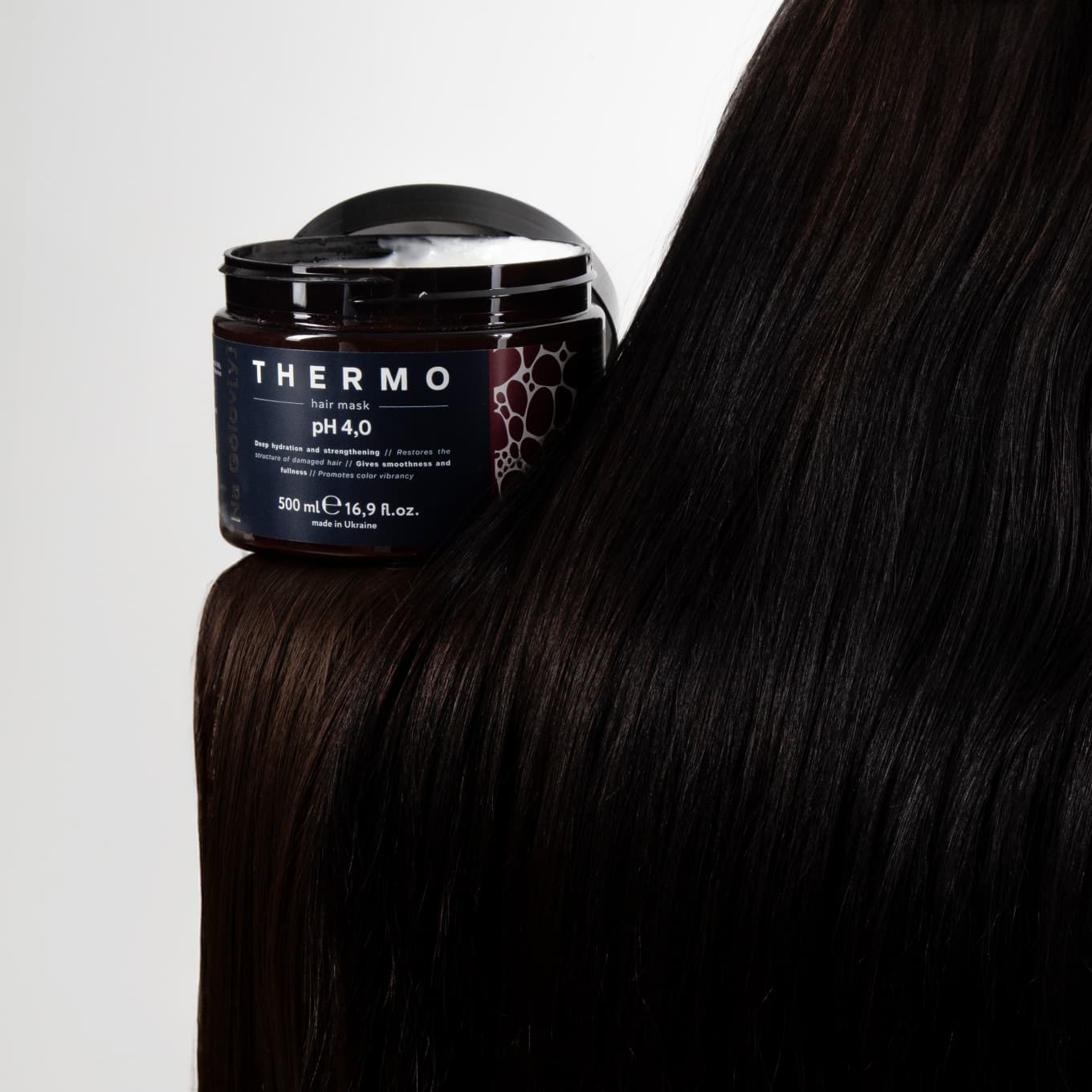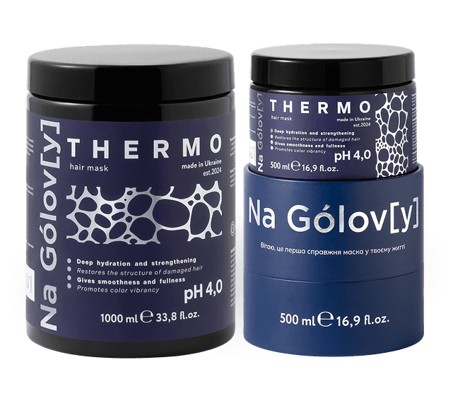 Термомаска для волосся ТМ «Na Golov[y]» призначена для зволоження і зміцнення пошкодженого, сухого волосся. Вона ефективно кондиціонує і розгладжує, глибоко зволожує, має армувальний ефект завдяки вмісту рисового крохмалю, сприяє яскравості кольору.