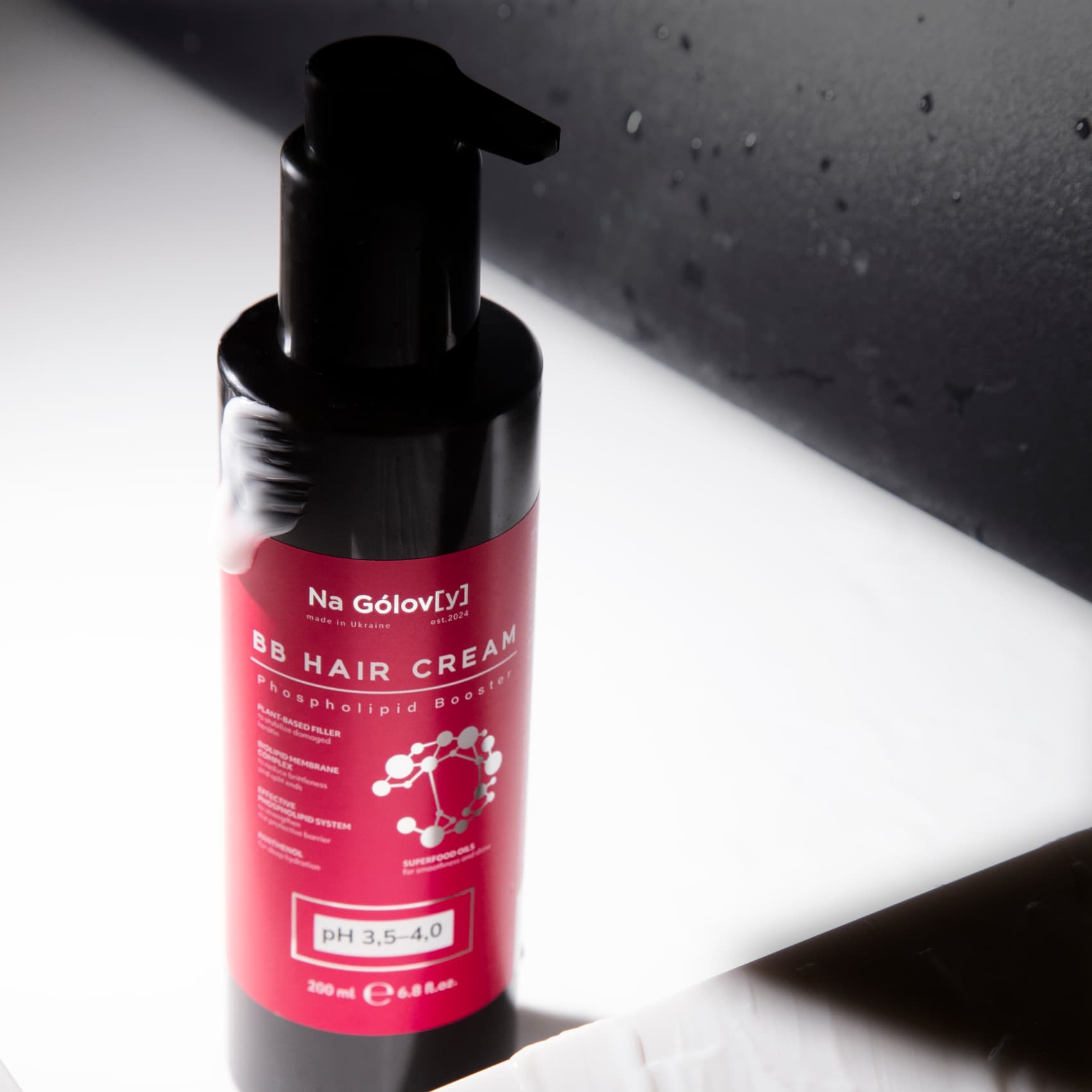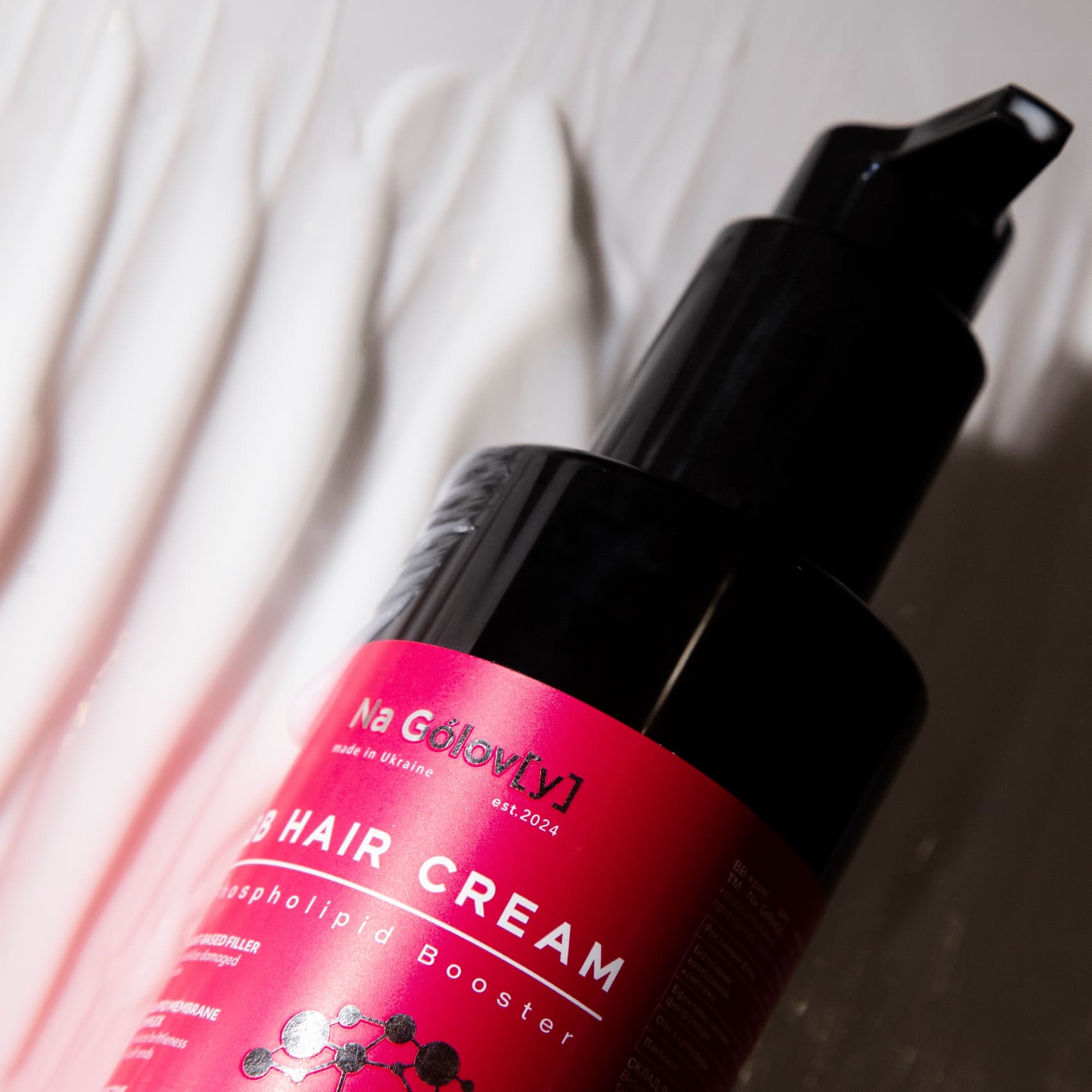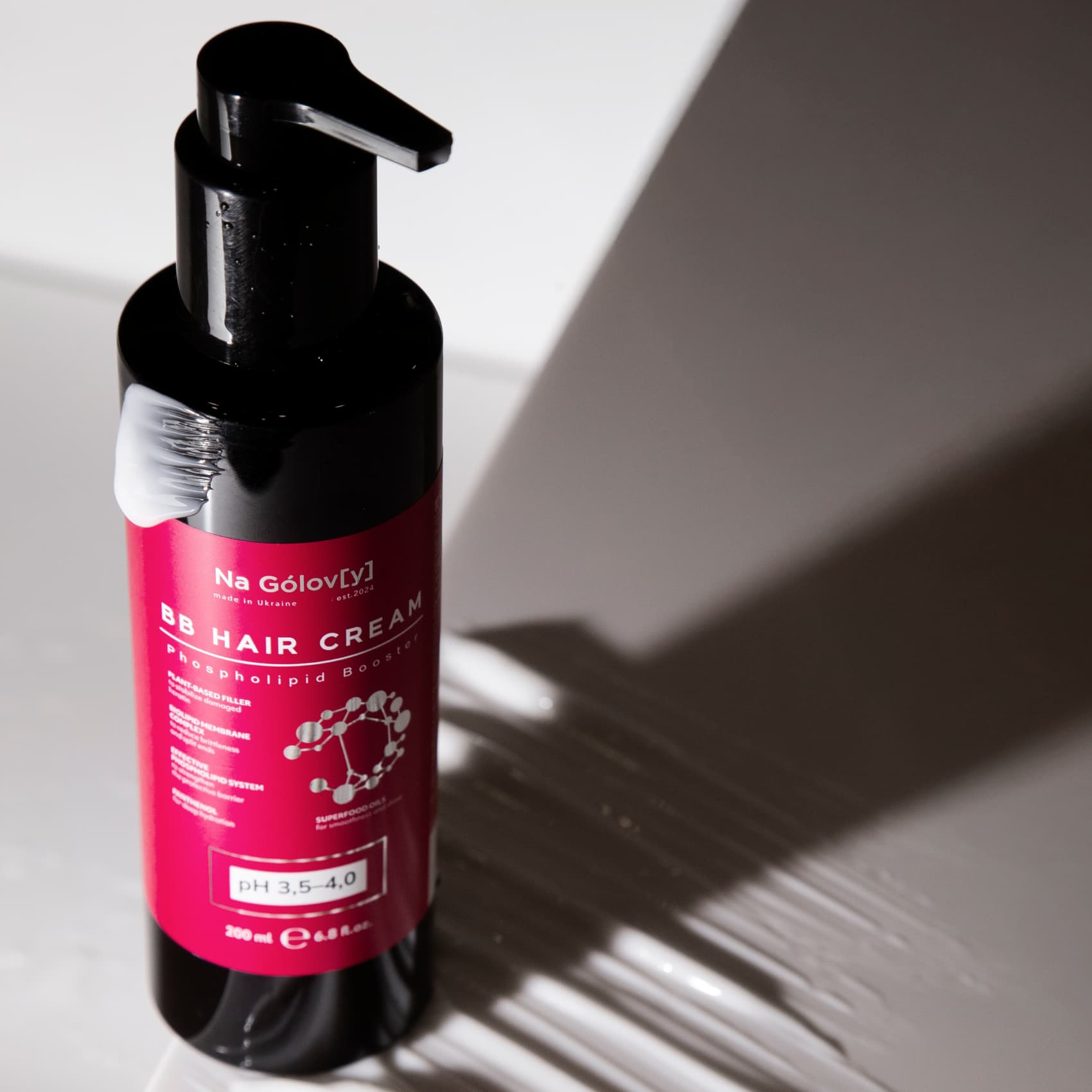 BB-крем для волосся Фосфоліпідний бустер ТМ «Na Gólov[y]» — це незмивний засіб для ефективного кондиціонування, розгладження, надання волоссю природного сяйва та привабливого вигляду. Рослинний філер для стабілізації пошкодженого кератину. Біоліпідний мембранний комплекс для зменшення ламкості та посіченості кінчиків. Ефективна система фосфоліпідів для посилення захисного бар’єра. Олії з суперфудів для гладкості та блиску. Пантенол для глибокого зволоження