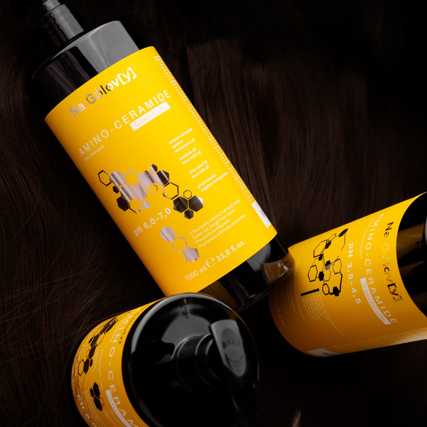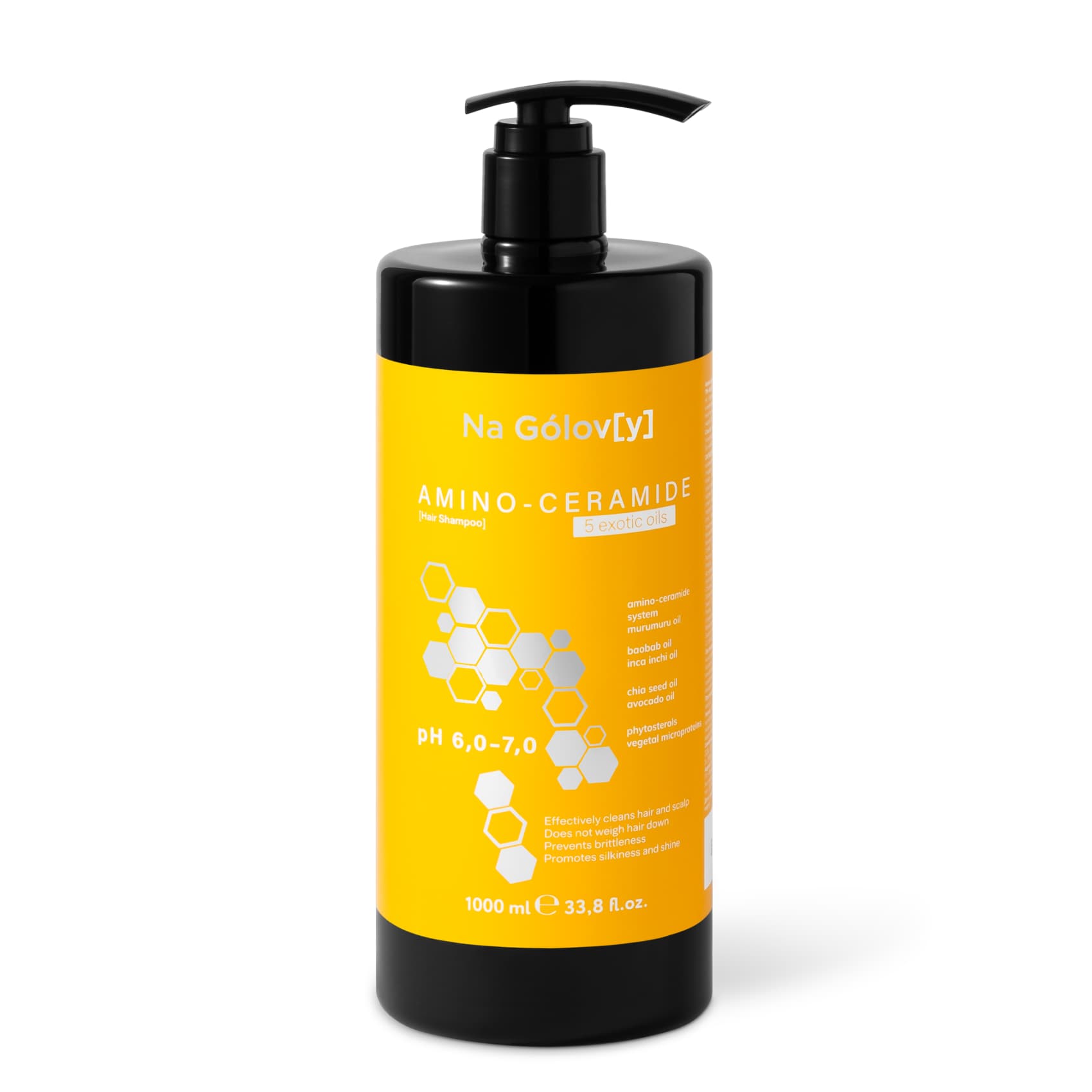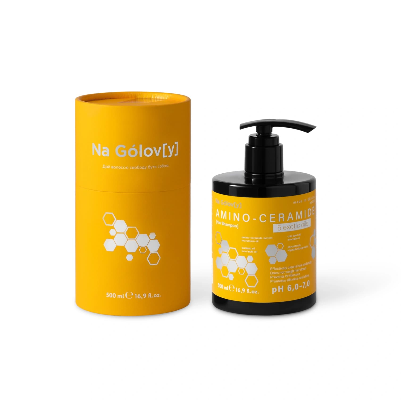 Аміно-церамідний шампунь для волосся 5 екзотичних олій ТМ «Na Gólov[y]» ефективно очищує шкіру голови та волосся, не спричиняючи пересушування. Натуральні зволожувальні компоненти допомагають запобігти ламкості. Комплекс екзотичних олій і мікропротеїнів сприяє зміцненню волосся, надає йому шовковистості та блиску без ефекту обтяження.