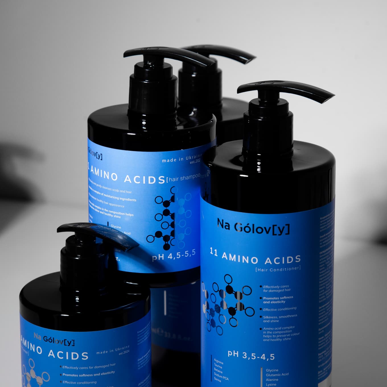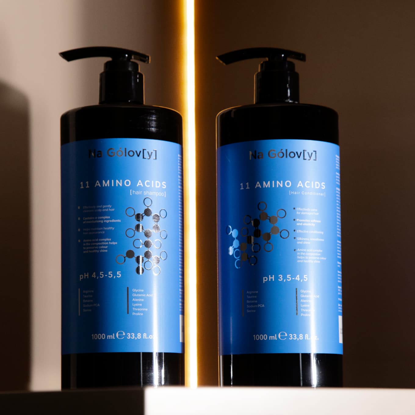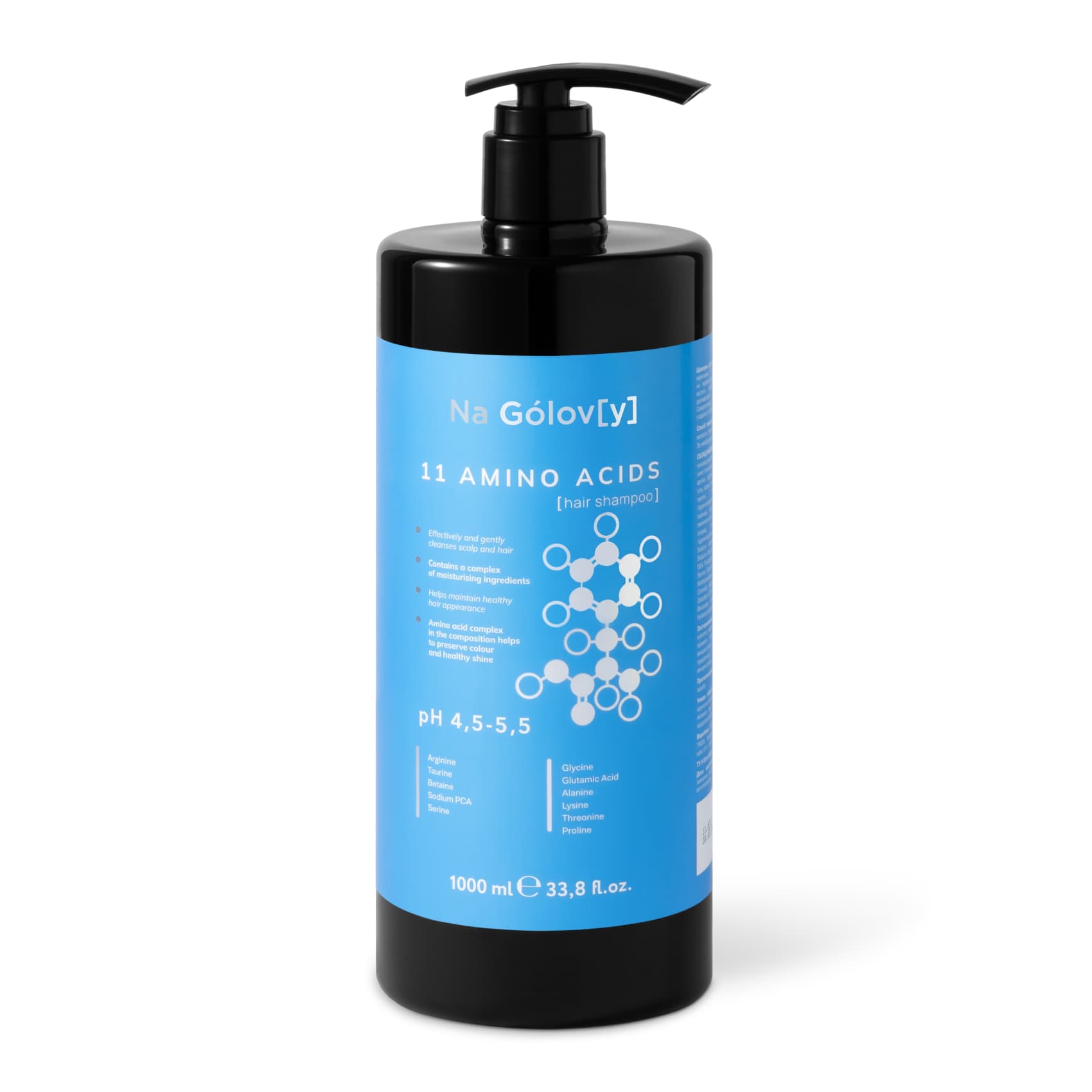 Шампунь для волосся 11 амінокислот ТМ «Na Gólov[y]» ефективно й лагідно очищує шкіру голови та волосся, не пересушуючи його. Збалансована формула шампуню містить комплекс зволожувальних компонентів, які допомагають підтримувати здоровий вигляд волосся. Синергетична комбінація амінокислот сприяє міцності, гладкості та блиску волосся, а також збереженню кольору.